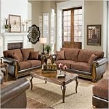 [***INCLUDED IN THIS SET: (1)Bentley Collage Sofa, (1)Bentley Collage Loveseat, (1)Bentley Collage Chair] Classic traditional styling comes to life in the Bentley collection of stationary living room upholstered furniture. The elegant details and features create a traditional design that adds warmth and depth to any room. Rolled arms blend beautifully into a carved exposed wooden rail and turned feet to add interest and rich detail to the collection. A reverse camel back is sophisticated and shapely, while three throw pillows add a touch of color and patterned detailing to soften the look. This collection is sure to make a strong, traditional statement in any home. The warm, neutral colors are understated and sophisticated, and are sure to match any home's decor. Traditional and classic, the Bentley collection is sure to become a great part of your family room or living room. Features: -Includes Bentley Collage Sofa and Bentley Collage Loveseat. -Also available are Bentley Collage Chair and Ottoman. -Dark brown bonded leather upholstery with elegant pattern fabric across back and seat. -Rolled arm design. -Beautifully carved exposed wooden rail. -Turned wooden legs in rich finish. -Includes toss pillows, as shown. -Made in the USA. Craftsmanship: -Constructed of hardwoods and multi-ply furniture grade plywood. -Corner block frame supported with high impact metal fasteners. -8-gauge ''no sag'' sinuous spring seating. Specifications: -Sofa dimensions: 40'' H x 88'' W x 38'' D. -Loveseat dimensions: 40'' H x 45'' W x 38'' D. -Chair dimensions: 40'' H x 45'' W x 38'' D. -Ottoman dimensions: 19'' H x 29'' W x 20'' D..../ Bundle-28 Bentley Collage Sofa and Loveseat Set / Sofa Cover